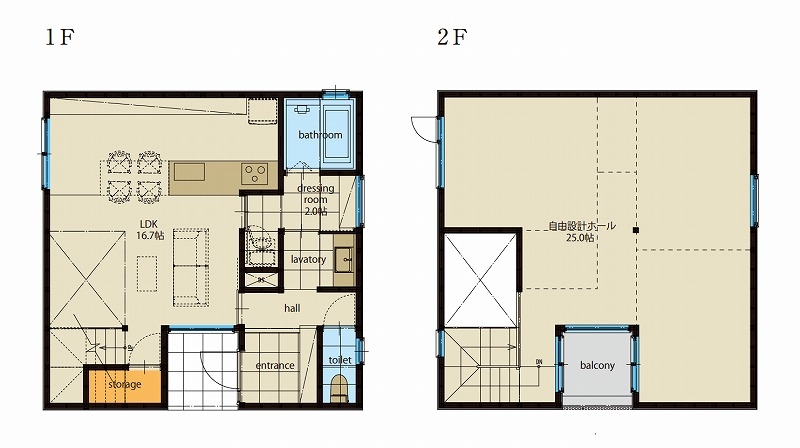 B-CLASSでは基本デザインの全てにおいて、平屋か2階建かを選択可能。家族構成や暮らし方に合わせた選択ができ、間取りのカスタムが可能なオプションもご用意しています。安全かつ快適な住宅を手の届きやすい価格で